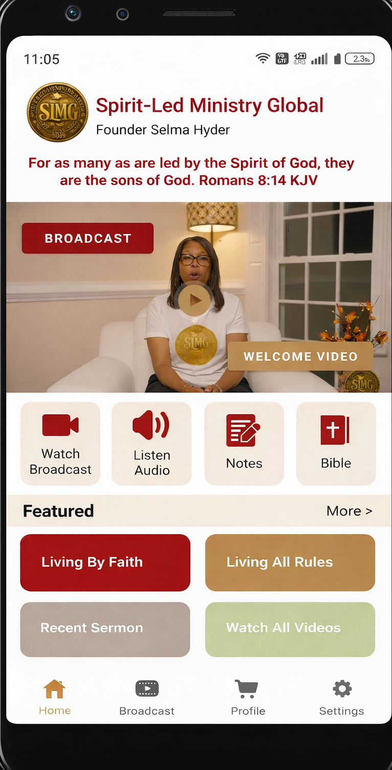 Spirit-Led Ministry Global offers a continuous broadcast of The Gospel of Jesus Christ — available anytime, anywhere. The Spirit-Led mobile app gives you access to live, audio, and video messages, and inspirational content designed to strengthen your walk with God.